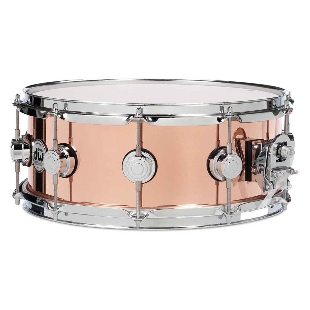 The DW Collector's Copper Snare Drum features an integrated reinforcement ring for a focused sound to complement the soft, warm tones of the drum. With a 3P (three position) butt plate and a high-quality DW throw-off, you can easily adjust the sound and tension of your snare to best suit your drumming situation. From live and performance use to studio and recording applications, the snare is the perfect for just about any style of music, offering plenty of response and playability. Remo drumheads offer a smooth and accurate response during play, whilst the integrated True-Pitch tension rods and True-Hoop triple flanged hoops keep your snare perfectly tuned throughout your performances. With durable chrome hardware and an attractive polished copper finish, the DW Collector's Copper Snare Drum is ideal for any advanced or professional drummer looking to step up their performance quality with a high-end DW copper snare.