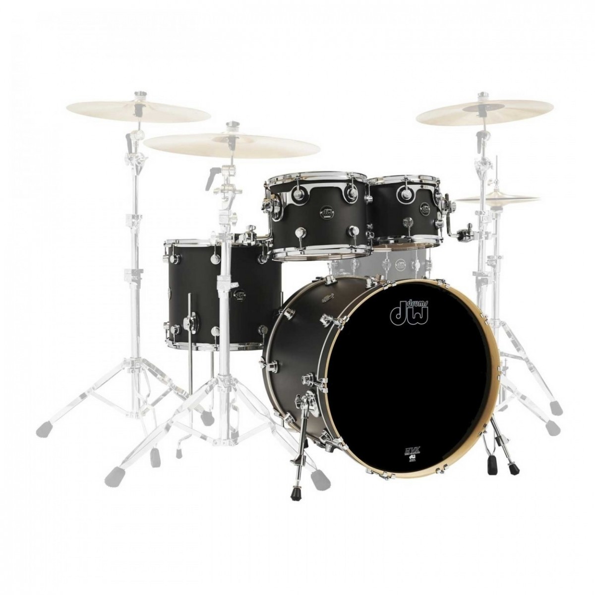 DW Performance Series drums come standard with a set of heads made specially for DW by Remo USA. The bass drums features coated/clear batter heads (with inlay ring) and ebony resonant logo heads (vented).
