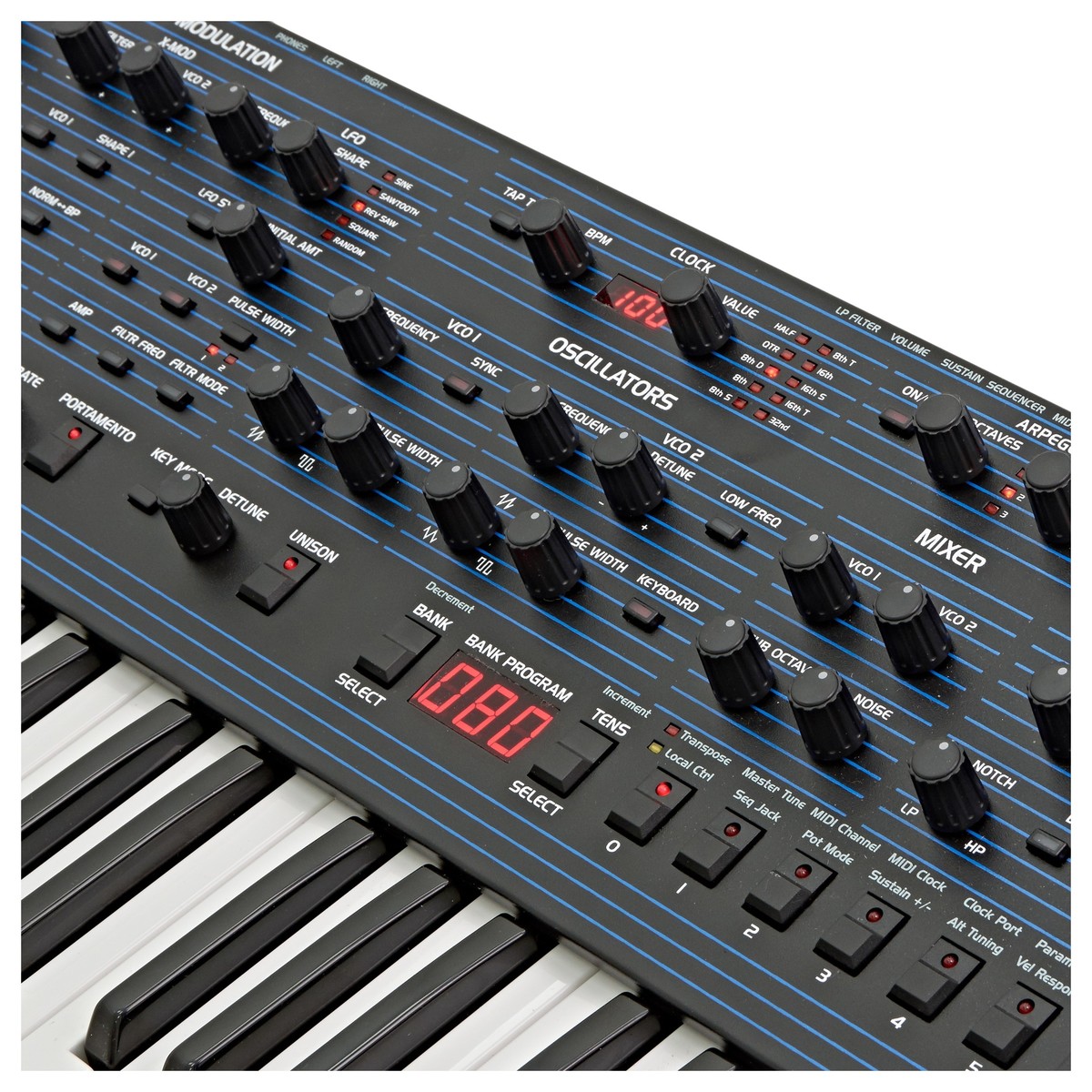 The OB-6 is also designed for straight-forward simplicity, resulting in a seamless user experience that is easy to program and play. The front panel features a knob for pretty much every function available, including both the 500 factory programs and 500 rewritable user programs.