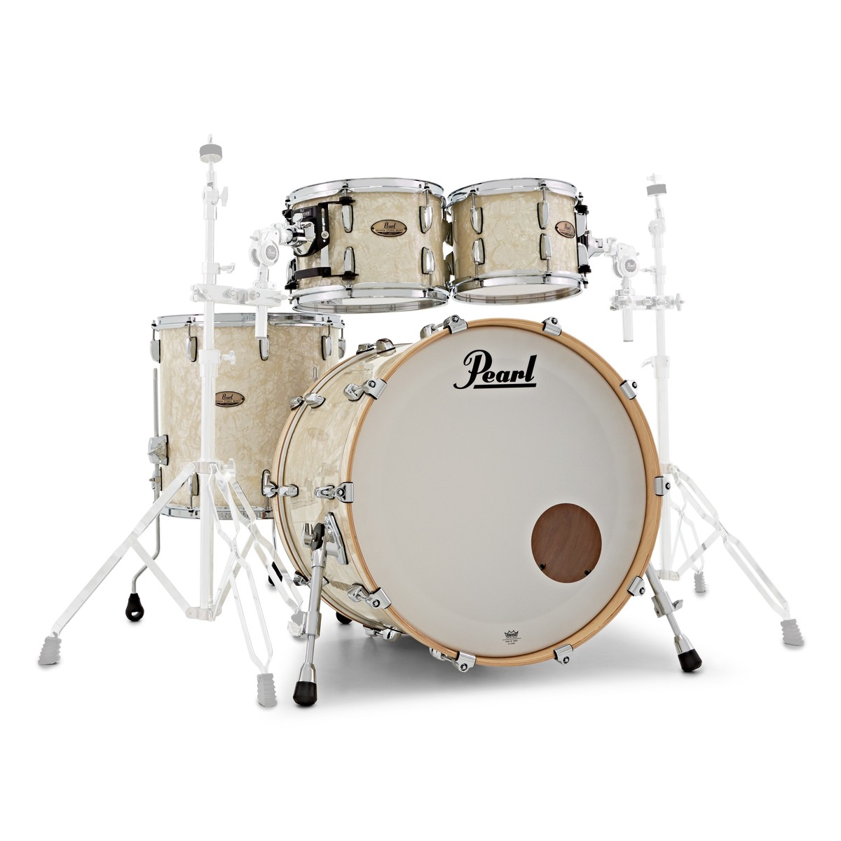 The Pearl Session Studio Shell Pack features Pearl's renowned OptiMount suspension system on all of the toms. This mounting system does not make any contact with the shell itself; instead it mounts to the lugs, ensuring maximum resonance and brilliant sustain. Rubber isolators at all connection points prevent any muting and allow the shell to fully resonate, whilst providing a sturdy hold and very little movement throughout playing.