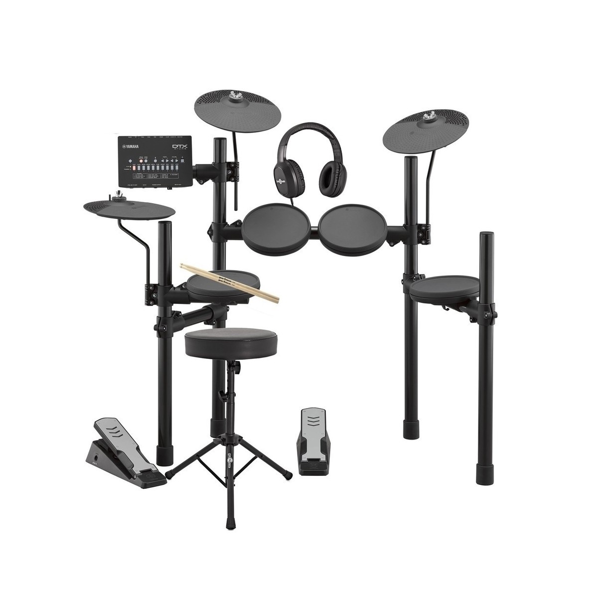 The DTX402K comes complete with 3 toms, a snare, crash, ride, hi-hat and pedal- as well as a newly designed silent bass pedal for greatly reduced volume and easy operation for beginners. The new, sturdy and compact frame will ensure the drums take up minimal space, as well as remaining stable and secure while playing. The simple assembly of the frame means less time building and more time performing, so you'll be up in minutes and enjoying all the interactive features the DTX Module has to offer.